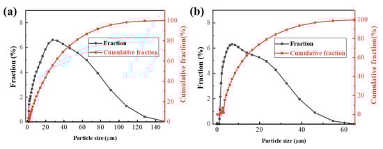 Particle size distribution analysis: (a) VTM; (b) bentonite.
