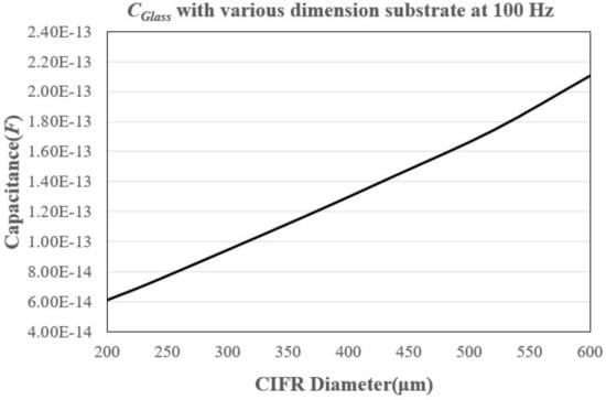 Capacitance value simulation results corresponding to the various CIFR electrode diameters under 1 mm hole-patterned electrode.