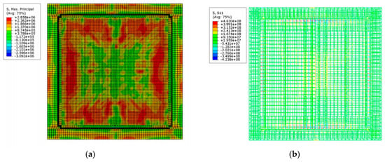 (a) Maximum principal stress of slab bottom concrete; (b) Reinforcement Stress of slab.