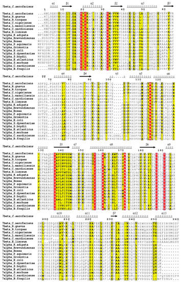 - Robert, X.; Gouet, P. Deciphering key features in protein structures with the new ENDscript server. Nucleic Acids Res. 2014, 42, W320–W324. [Google Scholar] [CrossRef] [PubMed]