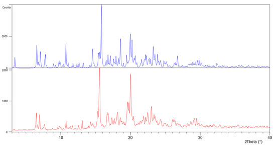 To investigate whether the analyzed crystal structure is truly representative of the bulk material, the X-ray powder diffraction (p-XRD) technique wasperformed at room temperature and compared with the pattern simulated from the crystal structure. As depicted in Figure 5, the experimental p-XRD pattern is nearly identical with the corresponding simulated one except for some differences that may be due to the preferential orientation. The studied form has a p-XRD comparable to the previously reported monohydrate form in the patent literature [42].