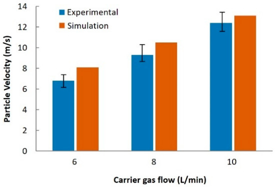 Comparison of simulation and experimental results of the particle velocity.