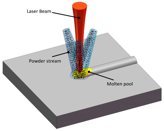 - Lin, J. Numerical simulation of the focused powder streams in coaxial laser cladding. J. Mater. Process. Technol. 2000, 105, 17–23. [Google Scholar] [CrossRef]