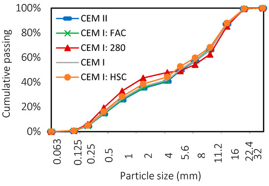 - EN-933-1. Tests for Geometrical Properties of Aggregates. Determination of Particle Size Distribution. Sieving Method; Comité Européen de Normalisation (CEN): Brussels, Belgium, 2012; p. 22. [Google Scholar]