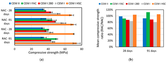 - These findings agree with the state of the art on the properties of recycled aggregate concrete and are caused by the porosity of recycled aggregates and by the increase in the water/cement ratio required to offset the influence of recycled aggregates on workability.