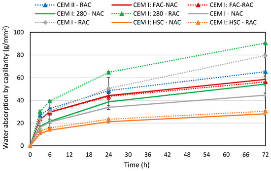 | CEM I: HSC—RAC | 784 | - | 949 | 152.6 | 0.44 | CEM I 42.5R | 0 | 3.5 |