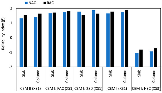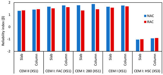 - The use of recycled aggregates somewhat reduces the reliability index;