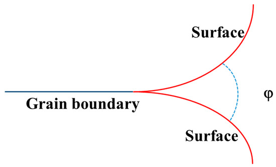 Equation (5) reveals the equilibrium relationship between the grain boundary and the crystal surface. However, the dihedral angle between grains is influenced by the grain boundary energy and the surface energy, and the segregation of rare earth elements can reduce the grain boundary energy and surface energy. As a result, the ultimate stability of the dihedral angle around the pores increases owing to a rapidly reducing surface energy, which further increases the pore stability after heat treatment.