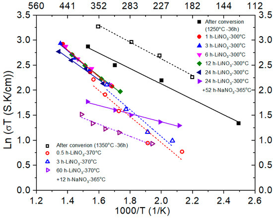 3.3. Conductivity of as Converted and Ion-Exchanged Samples