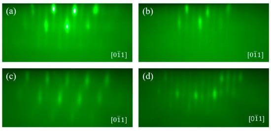In Figure 5b, the lamellar growth twins parallel to the (111) plane []. Micro-twins tend to appear along the [111] orientation because the surface energy of (111) plane is lower than that of (211) and (331) planes, so the dislocation is easier to migrate to (111) plane []. In general, the formation of twinning can be inhibited by the following methods: (1) The lattice matching between the epilayer and the substrate; (2) Adjust the growth direction of the epilayer (between [111] and [211]); (3) Optimize growth conditions to reduce twins, etc.