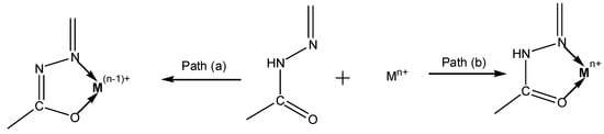 The bonding of hydrazone ligands with transition metals (a) enolic, (b) ketonic.