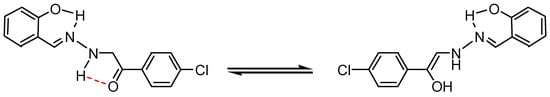 Hydrazone compounds include a C=N bond, in which the nitrogen atom has lone pair of electrons (Scheme 1). It can be concluded that nitrogen atoms have nucleophilic character (Figure 1) [1]. These compounds are relevant to ketones and aldehydes as they have a R1R2C=NNH2 structure [2,3,4,5]. According to a literature survey, hydrazones and their derivatives have various pharmacological and biological activities [6,7], as well as significant utility for synthesizing heterocyclic compounds [8]. Hydrazones can be classified in two ways: (a) as monohydrazones, dihydrazones and trihydrazone according to the number of hydrazone groups (Figure 2) or (b) as bi-, tri-, tetra-, penta-, hexa-, and octa-dentate according to the number of functional groups that can participate in complexation reactions [9]. The metal complexation between hydrazones and different metal ions is dependent on the nature of the metal ion, the basicity of the medium during the reaction, the anion of the salt, and the bonding position of hydrazone compounds [9]. It can be concluded that hydrazones can react as ketones (Scheme 2 path a) or enols (Scheme 2 path b) [10]. The capability of Schiff base ligands to act as chelates and their ability to coordinate with various metal ions through the nitrogen of the imine group and the oxygen of the carbonyl group has made them critical reagents in the coordination chemistry area [11]. These transition metal Schiff base complexes display diverse structural features and, in some instances, exhibit interesting antifungal, antibacterial, catalytic, and luminescence properties [12,13,14]. The existence of various binding positions in Schiff base ligands makes them good chelators that enhance the luminescence behavior for their formed complexes, especially the binuclear ones [15,16]. Until now, to the best of our knowledge no work on the condensation process of 2-hydroxybenzaldehyde and 1-(4-chlorophenyl)-2-hydrazinoethanol has been reported. Therefore, our study described in this article aimed to synthesize, spectroscopically characterize, and perform structural, thermogravimetric, and antimicrobial studies of a few binuclear complexes of Co(II), Ni(II), Cu(II), and Zn(II) with the tetradentate Schiff base ligand 2-{[2-(4-chlorophenyl)-2-hydroxyvinyl]-hydrazonomethyl}-phenol.