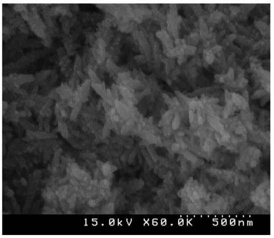 The crystalline substance was provided with [Pb(L)Br2]n (1) through the reaction of 1,2-bis (pyridin-3-ylmethylene)hydrazine (L) with lead(II) bromide. In addition, the size and morphology of compound I prepared by the UST technique were analyzed with SEM. Figure 4 shows the SEM of compound I acquired by using a 600 W ultrasonic generator at a [Pb2+] = [Lˉ] = 0.1 M concentration of primary reagents. Figure 4 also shows the nanorod morphology with a diameter of 45–140 nm for compound I. Further assessments are required for clarifying the formation of these structures. Packing the system at molecular levels, however, morphologically affects the nanostructured compound, suggesting coordination-encouraged creation over the morphology of the nanostructure [29,30,31,32].