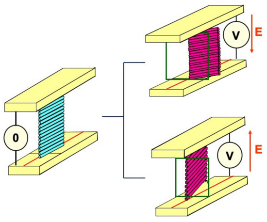 - Mayer, R.B. Piezoelectric Effects in Liquid Crystals. Phys. Rev. Lett. 1969, 22, 918–921. [Google Scholar] [CrossRef]