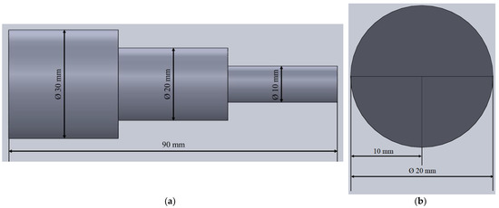 The sample is 90 mm in length comprising of three cylinders with different diameters. The largest cylinder is 30 mm in diameter, while the smallest cylinder has a diameter of 10 mm (Figure 1a).