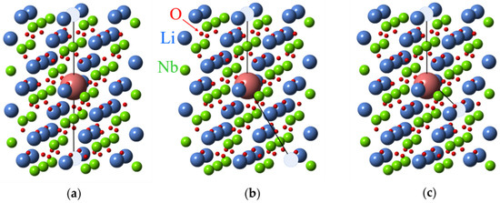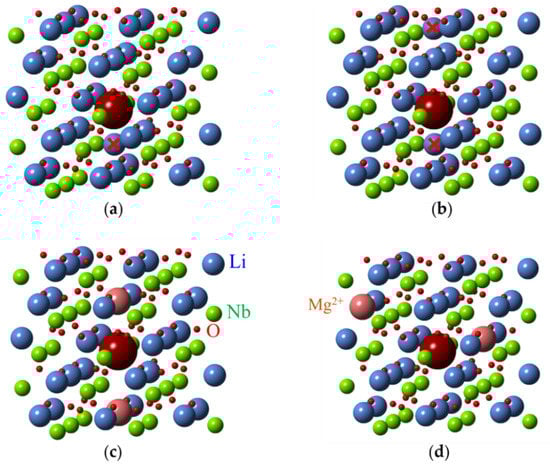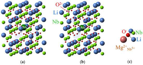 - Xue, D.; He, X. Dopant occupancy and structural stability of doped lithium niobate crystals. Phys. Rev. B 2006, 73, 064113. [Google Scholar] [CrossRef]