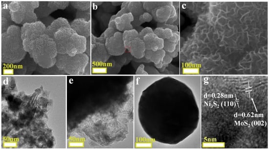 4.3. Preparation of Fe, C-MoySx/NiS and MoySx/NiS
