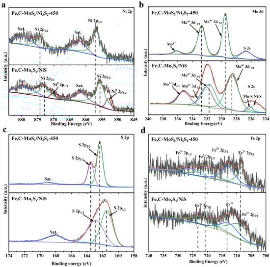 4.4. Preparation of Fe, C-MoS2/Ni3S2 or MoS2/Ni3S2