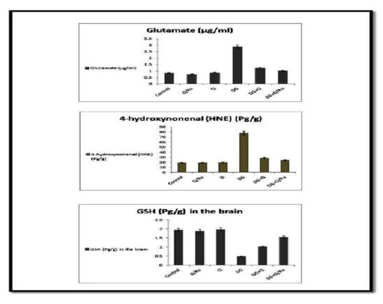 Brain glutamate level was determined by ELISA kit that was obtained from Abnova (Abnova, Taipei, Taiwan). Quantification of samples was achieved by comparing their absorbance with a standard curve prepared with known standards. The value expressed as µg/mL.