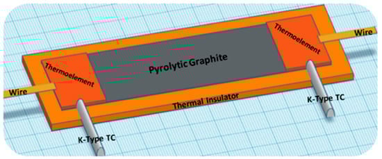 PG, which was used as the primary thermoelement in the TC construction, is an allotrope of carbon that has high stability, excellent thermoelectric properties and it’s also known to have high compliance and resistance to elevated temperatures [22,23,24]. PG has a melting point of ∼3550 °C [23]. This material also has a large specific surface area and a low coefficient of thermal expansion (CTE) as its properties and hence, only exhibits little to no changes across the area, volume, or shape after a thermal gradient is applied [25]. The mode of heat transfer in PG is attributed to phonon transport [23]. Sheets of PG are made by compressing a group of graphite flakes without a binder. This makes the sheets very flexible and brittle after production [24,26]. Large surface areas are observed because the PG sheets are usually exfoliated. To add to the foregoing, pyrolytic graphite does not undergo distortion at elevated temperatures as observed by the authors [27,28]. The PG sheet used was bought from www.graphenesupermarket.com, it was 25 microns thick and had a density of 2 g/cm3.