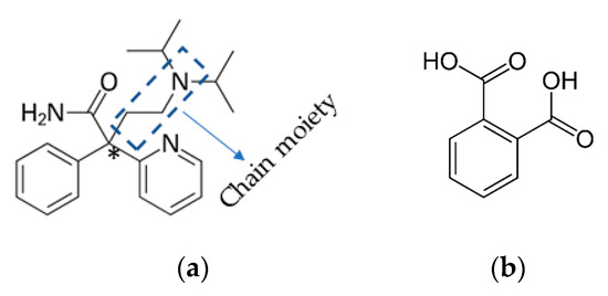 Structures of (a) racemic disopyramide (DPA) and (b) phthalic acid (PA).