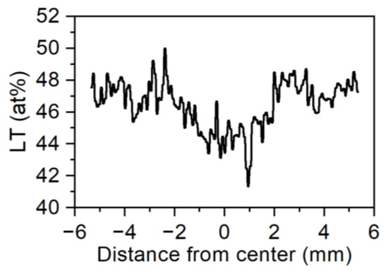 LT distribution in LiNb0.5Ta0.5O3 specimen along the full crystal diameter (right edge) of the sample in Figure 2b.