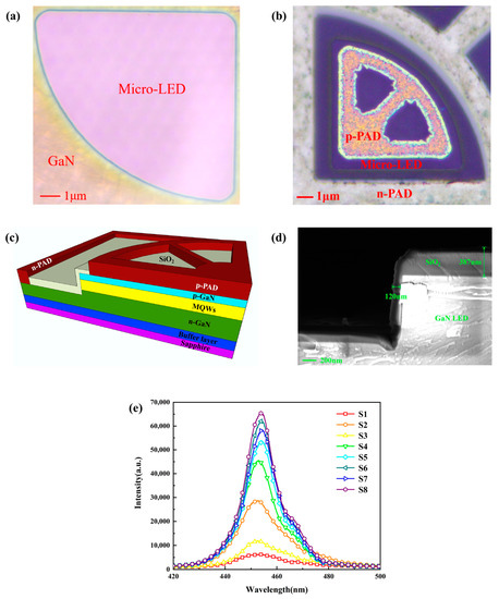Figure 1a, sector-shaped GaN-based Micro-LEDs were fabricated. The structure diagram can be found in