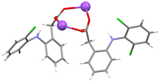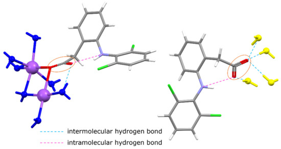 - Muangsin, N.; Prajaubsook, M.; Chaichit, N.; Siritaedmukul, K.; Hannongbua, S. Crystal Structure of a Unique Sodium Distorted Linkage in Diclofenac Sodium Pentahydrate. Anal. Sci. 2002, 18, 967–968. [Google Scholar] [CrossRef]