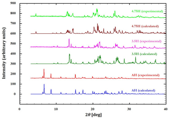 - Fujii, K.; Uekusa, H.; Itoda, N.; Hasegawa, G.; Yonemochi, E.; Terada, K.; Pan, Z.; Harris, K.D.M. Physicochemical under-standing of polymorphism and solid-state dehydration/rehydration processes for the pharmaceutical material acrinol, by ab initio powder X-ray diffraction analysis and other techniques. J. Phys. Chem. 2010, 114, 580–586. [Google Scholar]