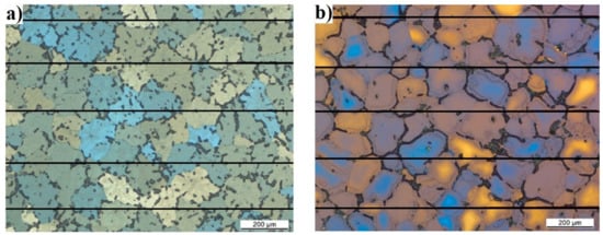 The crystal grain size class was determined according to the ASTM E-112-96 standard by the line cross-section method (Figure 2). The average grain size class of the laboratory castings was (G) 3, with an average grain size of 120.3 μm and an average number of 62 crystal grains per mm2.