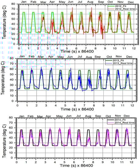 Table 1, the mean daily temperature gradients for the generated cycles are relatively smaller when compared with the IEC 61215. A maximum of 40.2 °C was recorded in 2012, whereas the IEC 61215 temperature gradient is 125 °C.