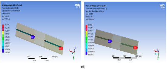 Figure 10ii) and the minimum accumulated creep strain of 0.012002 mm/mm (