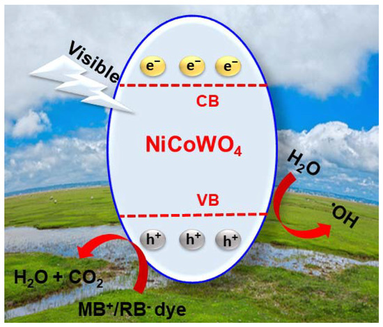 Schematic representation of dye degradation by calcined Ni-CoWO4 NPs.