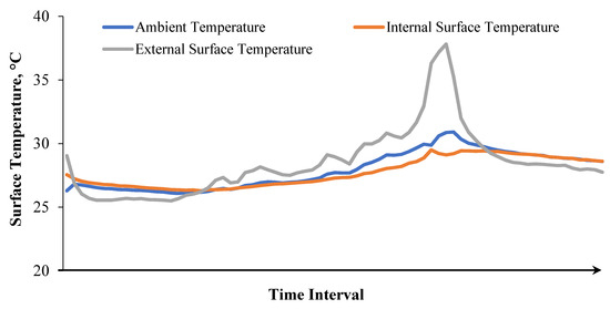 Exterior interior surface temperature of the proposed design mixes for small-scaled wall.