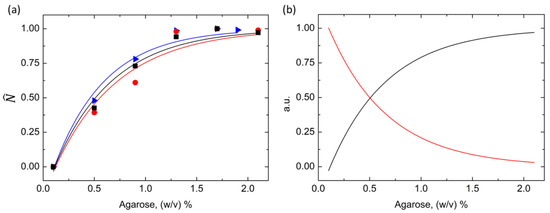and are represented in Figure 3b. The effect of the agarose network on the nucleation density and the crystal size was analogous, as highlighted by the good agreement between the fitting parameters of the two laws. More specifically, and underwent the same initial alteration imposed by the gel, and the action of the gel was fulfilled for the same agarose concentration, i.e., 1.3%.