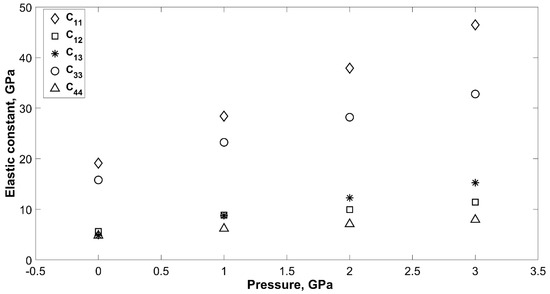 - Krasil’nikov, O.M.; Vekilov, Y.K.; Mosyagin, I.Y. Elastic constants of solids at high pressures. J. Exp. Theor. Phys. 2012, 115, 237–241. [Google Scholar] [CrossRef]