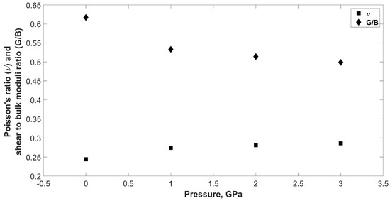 Pressure-dependent Poisson’s ratio (ν) and shear to bulk moduli ratio (G/B) of CO2-NH sH gas hydrate at 0 K.