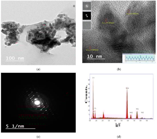 ((a): HRTEM, (b): FFT, (c): SAED and (d): EDX) images of the S2 samples.
