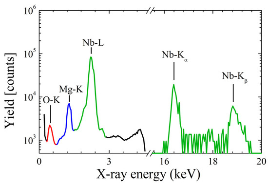 Characteristic X-ray spectrum induced by irradiation of LN by 3.1 MeV He+ ions.