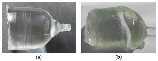1 mol% (a) and 5 mol% (b) Dy doped Li6Y(BO3)3 single crystals grown by the Czochralski method. The cylindrical part is 30 mm long and 25 mm in diameter.
