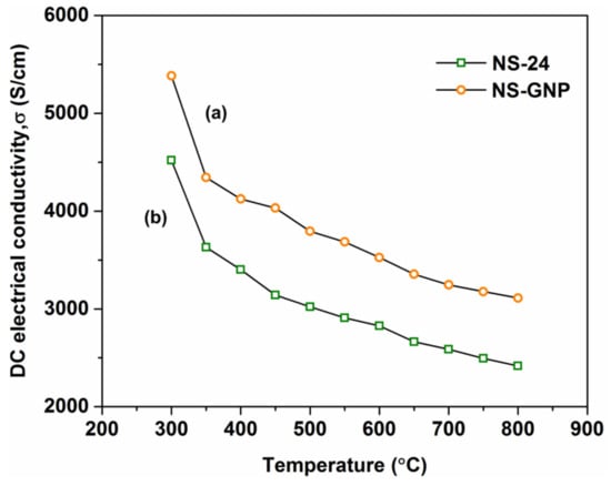 Electrical conductivities of (a) NS-GNP and (b) NS-24 cermet anode.