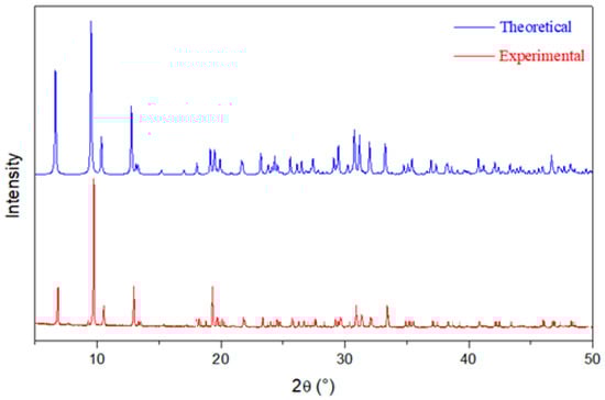 Theoretical and experimental XRPD of (C6H8Cl2N2)2[Cd3Cl10]·6H2O.