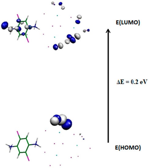 The HOMO and LUMO molecular orbitals were determined (Figure 12). As it can be seen, the HOMO-LUMO energy difference is very small, around 0.2 eV, which seems to indicate a weak stability. The HOMO is localizedon the inorganic part of the system, while the LUMO islocated on the organic and the inorganic parts, which will lead to electronic transfers from one to the other. The (DOS)energy is represented in Figure 13.