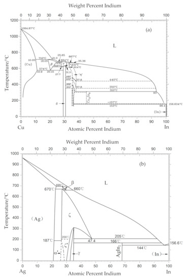 Cu–In and Ag–In phase diagram: (a) Cu–In phase diagram, (b) Ag–In phase diagram [9].