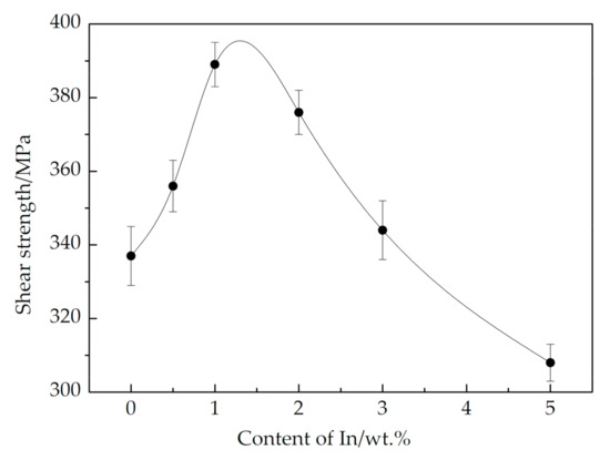 Effect of In content on shear strength of brazing joints.