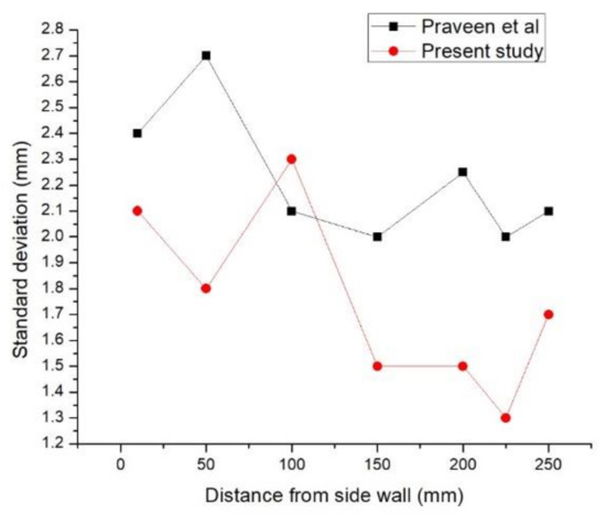 The comparative analysis of standard deviation from the present setup was done with different investigators as shown in Figure 2 and Figure 3.