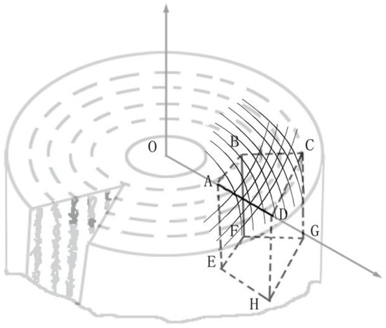 Schematic diagram of the sample acquired from the ivory or mammoth ivory. ABCD: transverse plane, CDHG: outer circumferential plane, ADHE: radial plane.