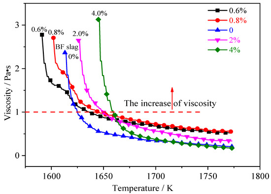 2.2.2. Experiment on Effect of UPC on BF Slag Viscosity