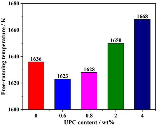 3.2. Effect of the UPC on the Free-Running Temperature of the Slag