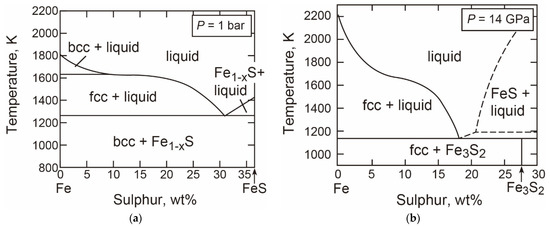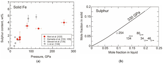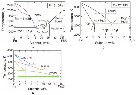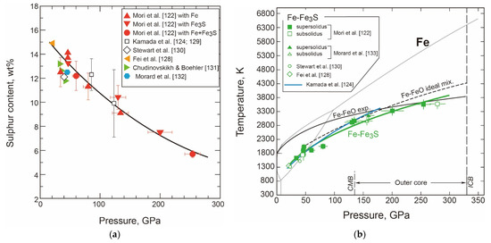 - Chudinovskikh, L.; Boehler, R. Eutectic melting in the system Fe-S to 44 GPa. Earth Planet. Sci. Lett. 2007, 257, 97–103. [Google Scholar] [CrossRef]